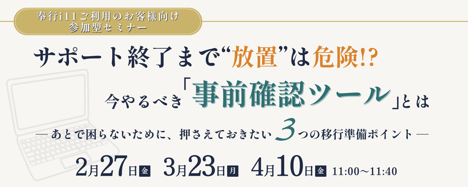 2026.02.04サポート終了まで“放置”は危険!?今やるべき「事前確認ツール」とは― あとで困らないために、押さえておきたい3つの移行準備ポイント ―(参加無料)